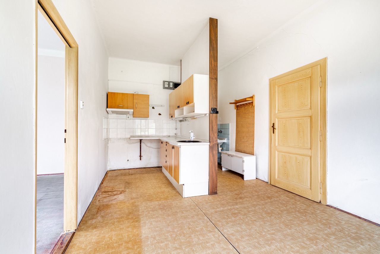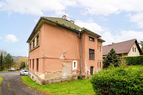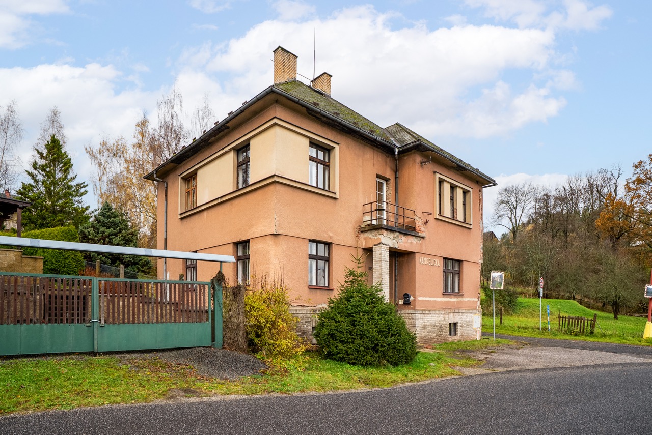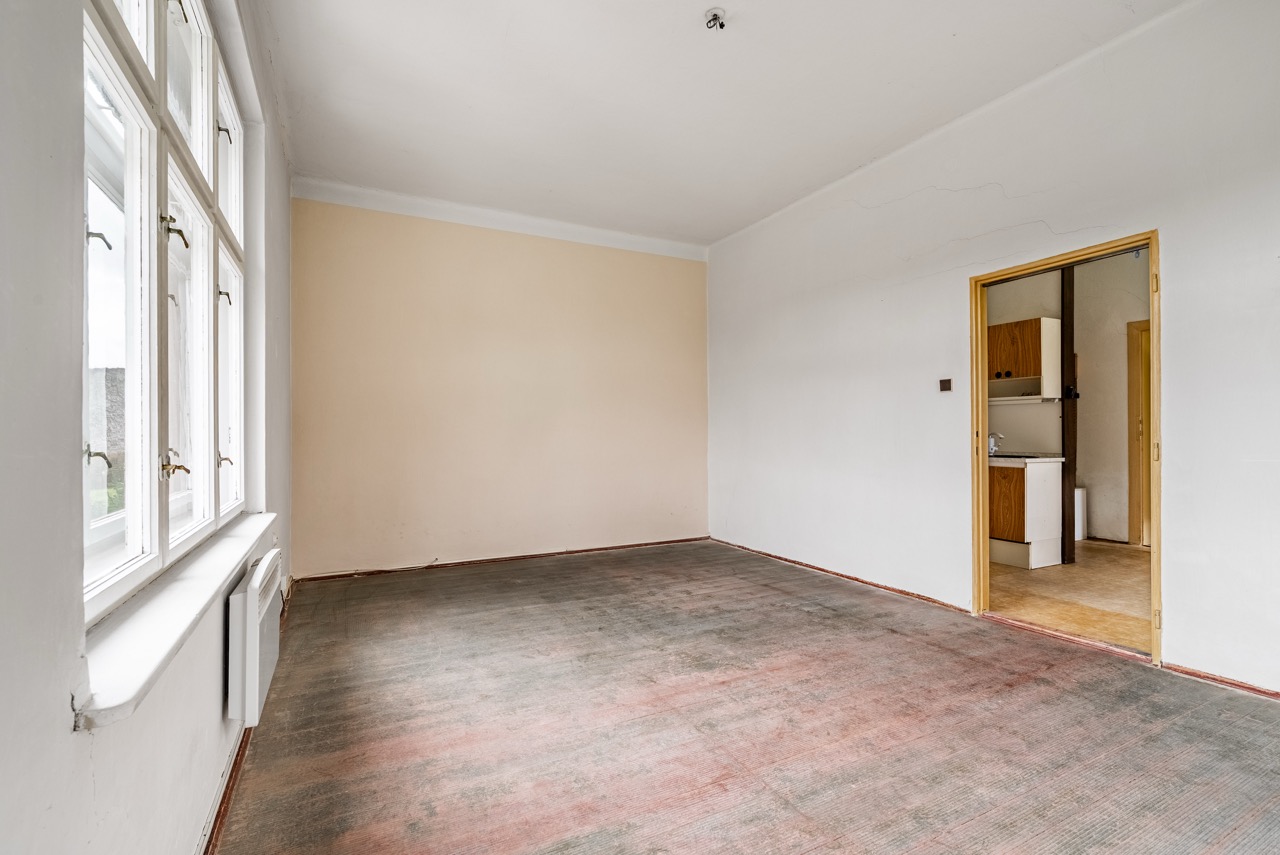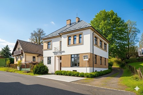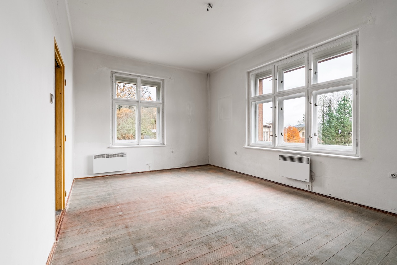 In the exclusive representation of the owner, I offer this multi-unit dwelling for sale, which comprises three separate residential units and is located in the municipality of Benešov u Semil. This property is situated in close proximity to the district town of Semily. The building, which historically served as a local savings bank (kampelička), is entirely basemented. The presence of a basement represents a significant benefit for future utility.