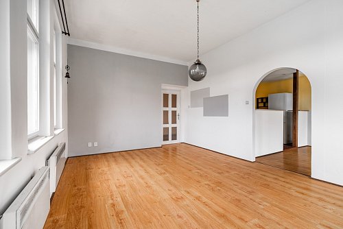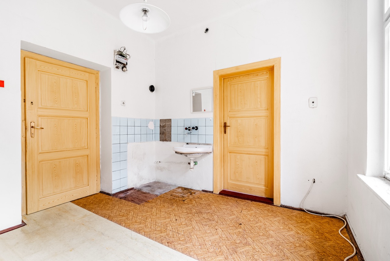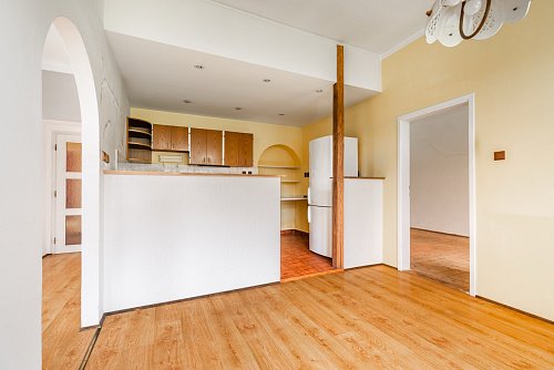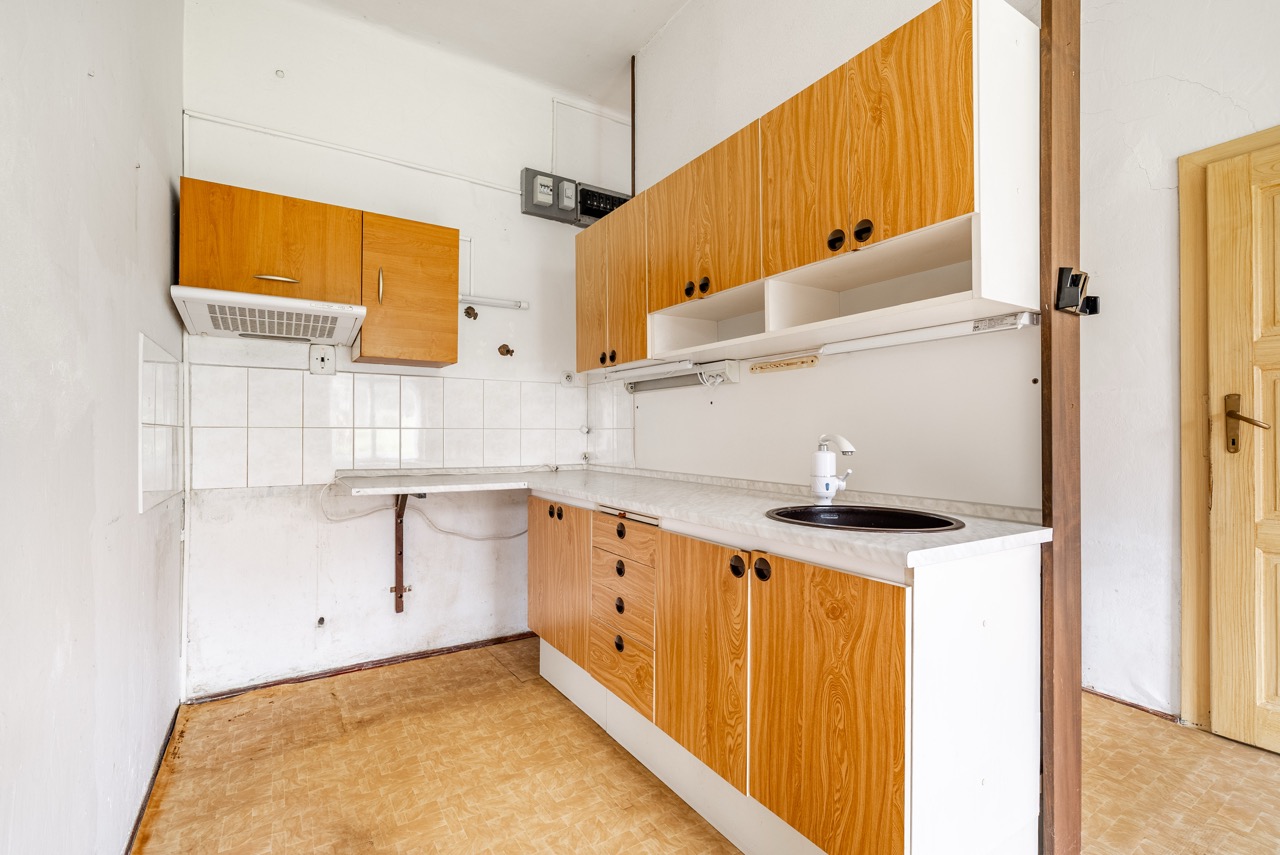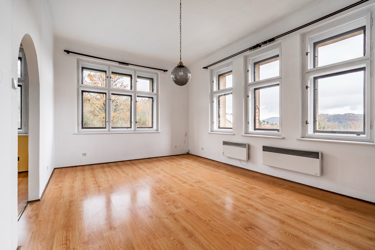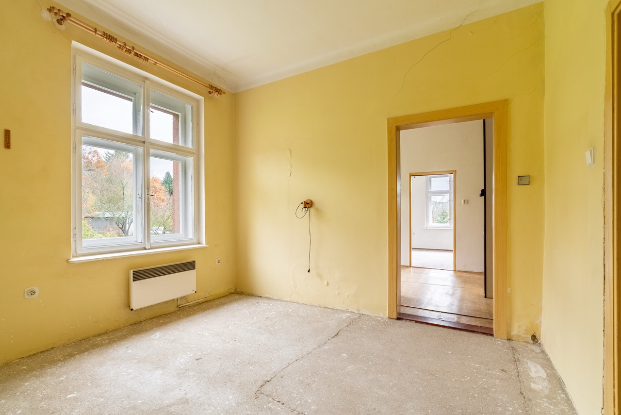 In the exclusive representation of the owner, I offer this multi-unit dwelling for sale, which comprises three separate residential units and is located in the municipality of Benešov u Semil. This property is situated in close proximity to the district town of Semily. The building, which historically served as a local savings bank (kampelička), is entirely basemented. The presence of a basement represents a significant benefit for future utility.