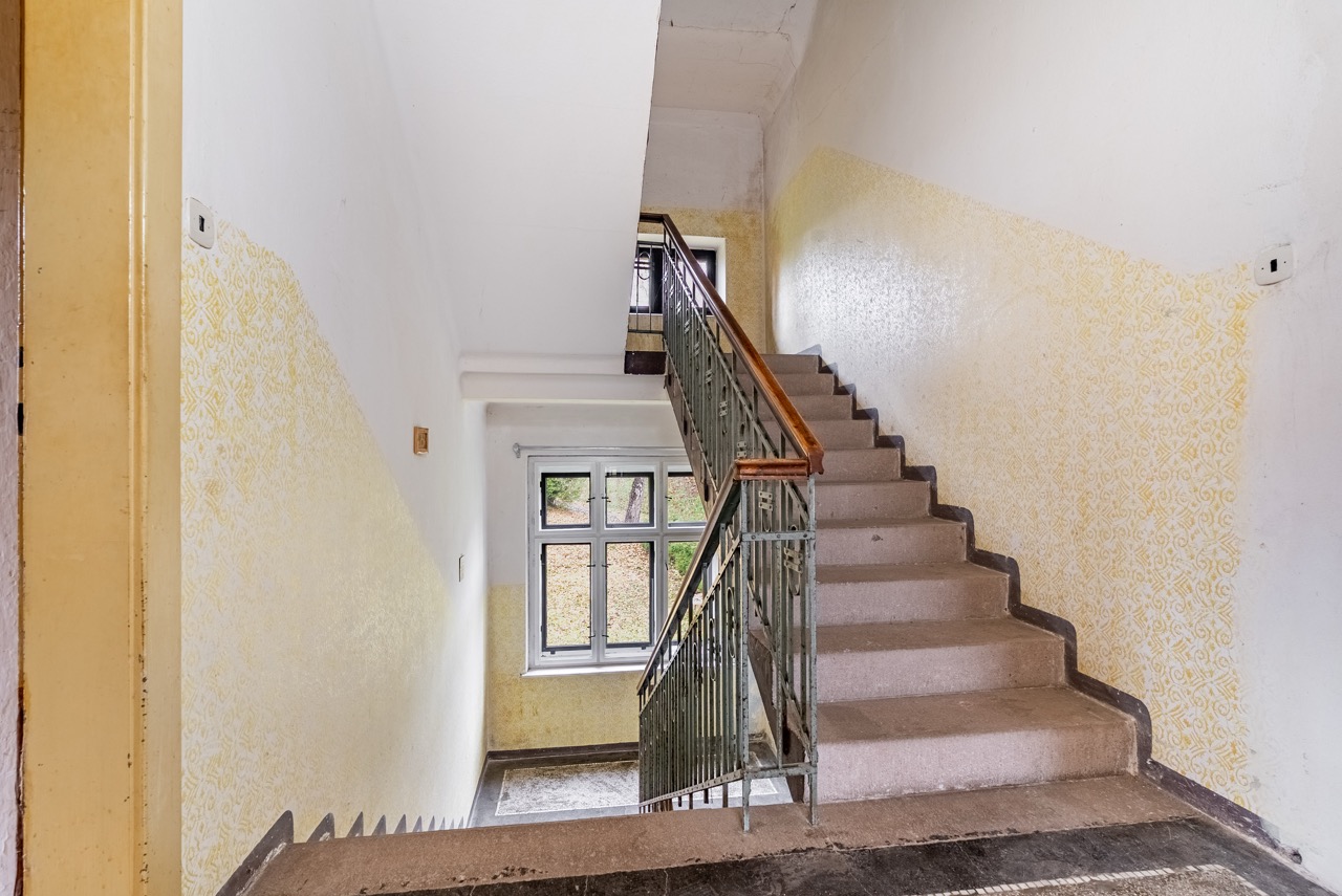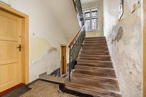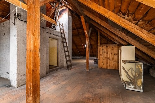 V prvním patře naleznete bytovou jednotku 3+1 s přístupem na balkon. Toto patro dále zahrnuje dílnu, kde proběhla příprava veškerého technického zázemí pro budoucí vybudování koupelny. Vhodným stavebním zásahem lze v tomto podlaží vytvořit dvě samostatné a plně funkční bytové jednotky. Nad obytnými prostory se rozprostírá prostorná půda. Tato plocha skýtá skvělou příležitost k vybudování moderní půdní vestavby, nebo mezonetových bytů.