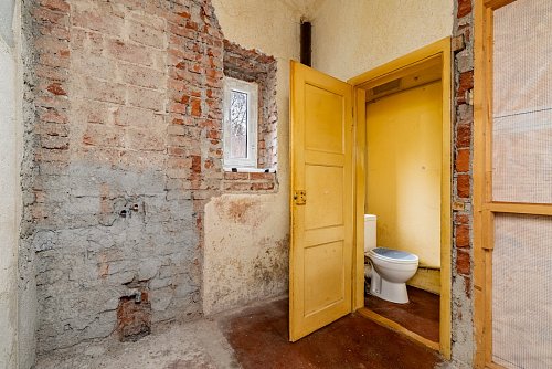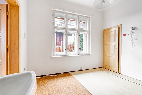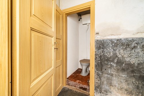 Přízemí domu dispozičně nabízí dvě samostatné bytové jednotky, konkrétně 2+1 a 1+1. Je důležité uvést, že toaleta pro byt 2+1 se v současném stavu umisťuje na chodbě. Toto řešení zároveň nabízí příležitost k optimálnímu přerozdělení prostoru.