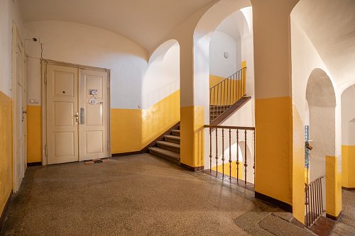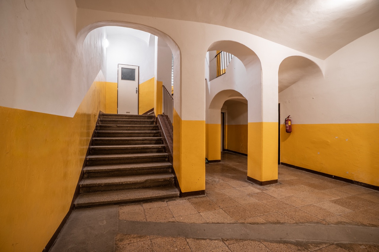 The property includes a spacious cellar with an area of 14 m² and a co-ownership share of the common courtyard. There is also the possibility to use the attic space of the building.