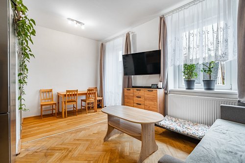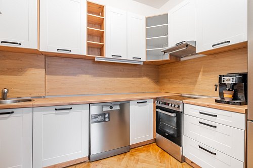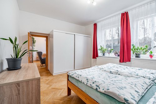 Majitelé zároveň nechali vyměnit původní dřevěná okna za novější dřevěná s dvojskly, a to v plném souladu s požadavky památkářů. Dále zde naleznete klidnou ložnici a koupelnu vybavenou vanou. V celém bytě jsou položeny parkety a plovoucí podlaha.